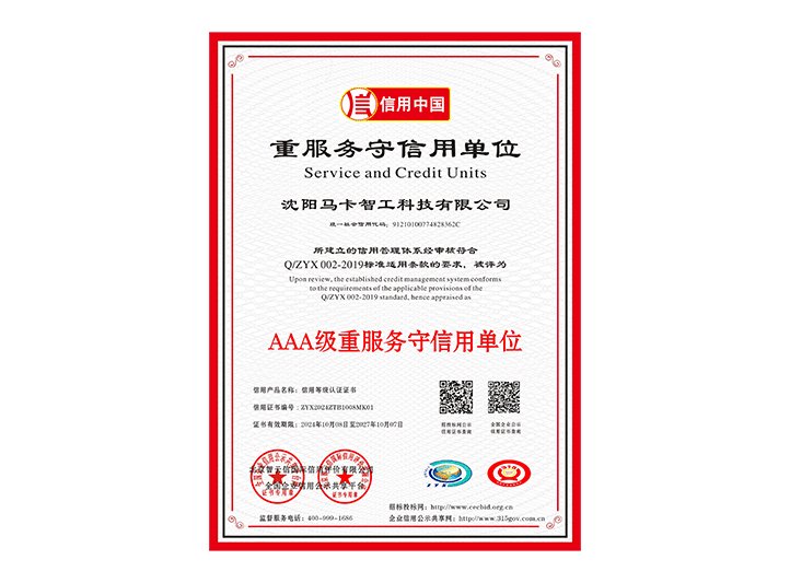 AAA级重服务守信用单位